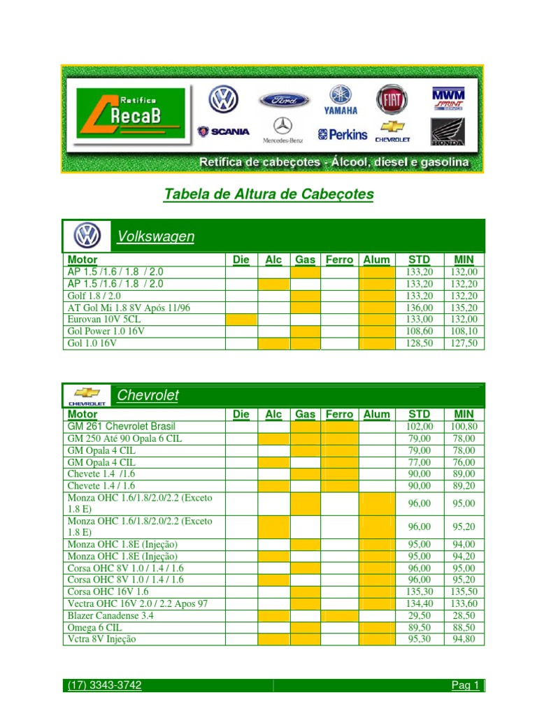 Tabela De Altura De Cabecote