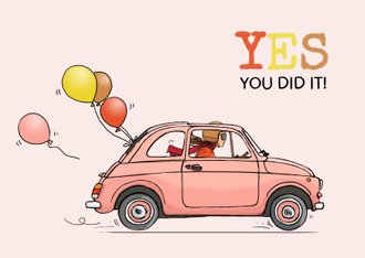 Felicitatiekaart Geslaagd Fiat 500 Roze Kaartje2go