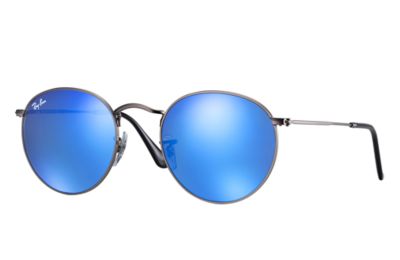 Ray Ban Round Flash Lenses Rb3447 Gunmetal Metal Blue