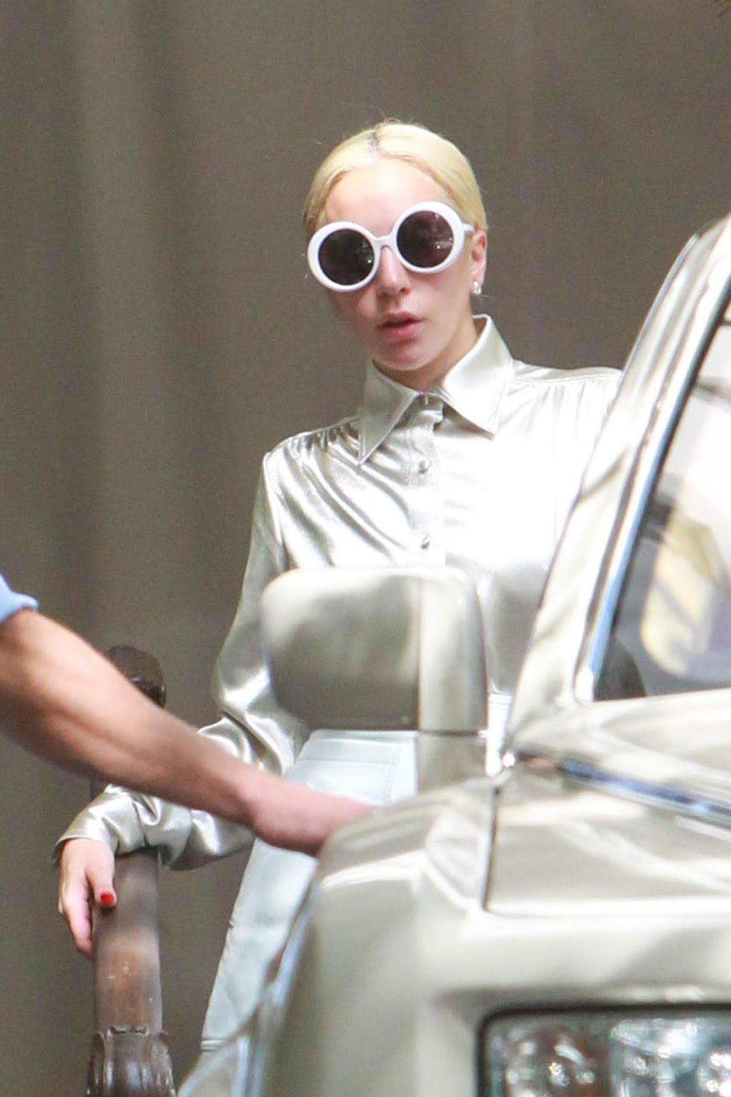 Ladies In Satin Blouses Lady Gaga Silver Satin Blouse